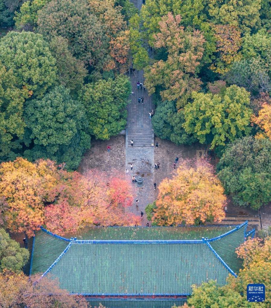 11月9日拍摄的江苏省南京市灵谷景区(无人机照片)。